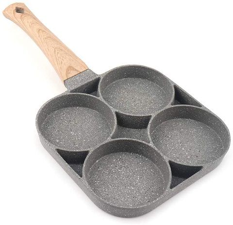 4 tazze di padella antiaderente in lega di alluminio multifunzione padella per omelette con manico a grana di legno
